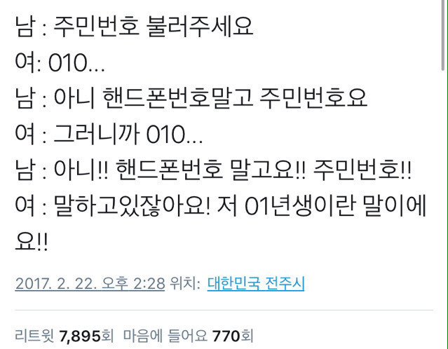 2000년대부터 뒷번호 남자는 3 여자는 4요. |