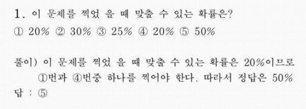 2/5 이기 때문에 40% 인데, 40% 는 보기에 없음으로 0% 인데 0%가 보기에 없음으로 0% 군요. |