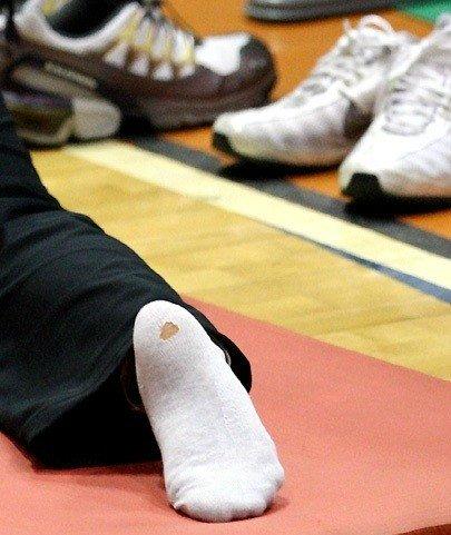 스트레칭 하다가 양말에 구멍이 난 사진이 찍혔던 빵순이는