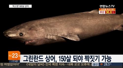 http://www.yonhapnewstv.co.kr/MYH20160815008800038/ 500살 맞네요. 척추 동물중 최장수라네요;ㄷㄷ
