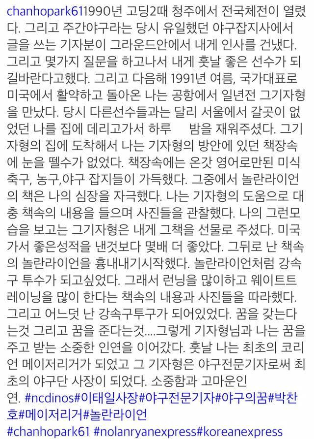 박찬호가 말이 많은건 익히 봐와서 알고 있지만 또 그런 선비 같은 성격덕에 메이저리그 생활하면서 큰 사고나 사건없이 지낼 수 있었던거 아닐까 하네요. |