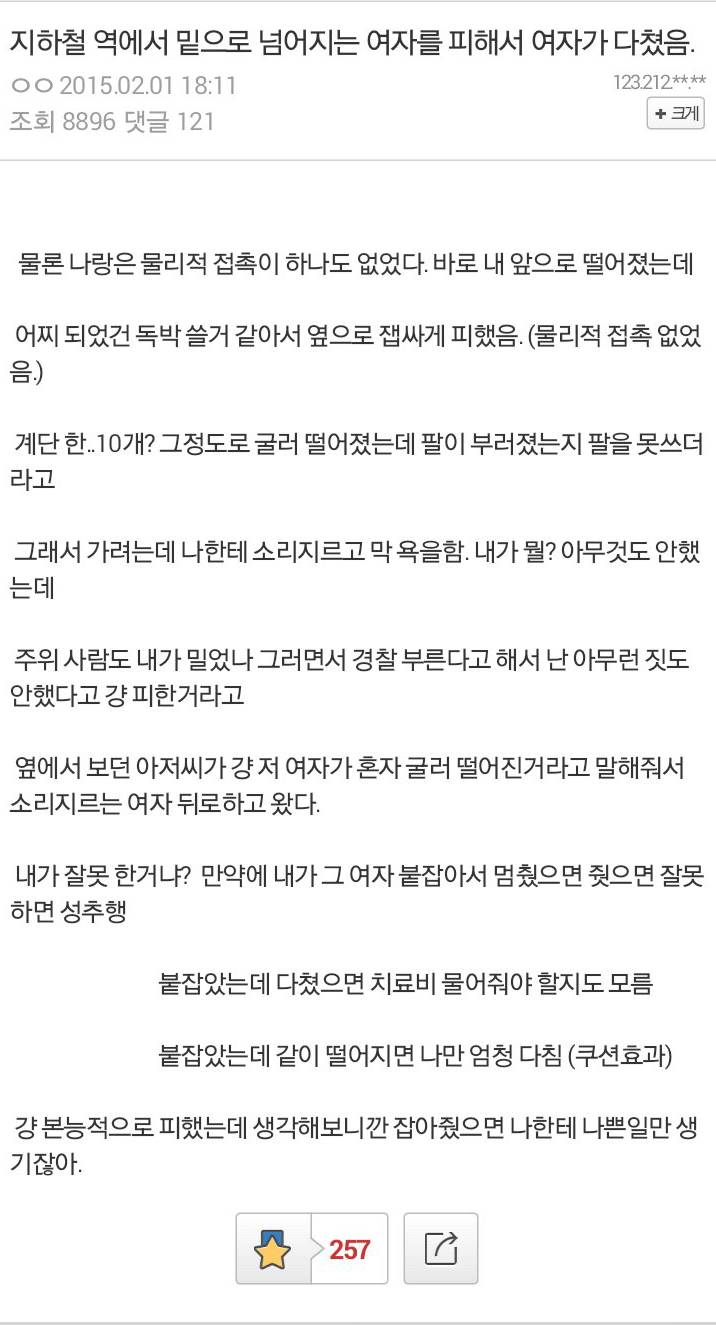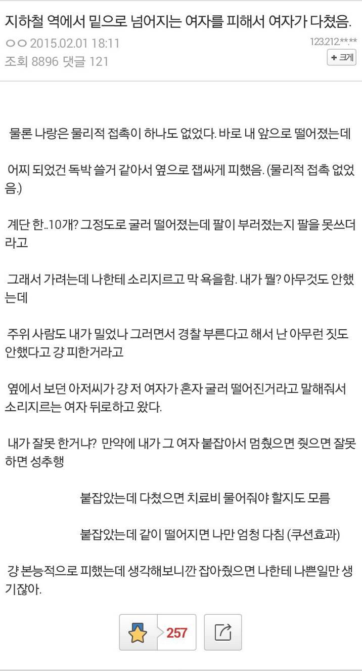 옆에서 봤다는 아저씨 없었으면 밀었다고 잡혀갔겠네 |