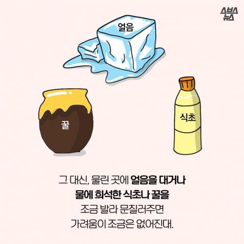가려운데는 냉보다는 핫찜질이 최고죠~ 가려움 바로 사라지고 최소 반나절 이상은 안가렵게 지나갈 수 있어요. 옛날부터 써온 방법인데 이번 비정상 회담에서 에스더씨가 얘기하더군요.
