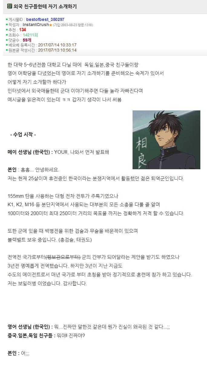 [펌] 외쿡 친구들한테 자기 소개하기 > 유머게시판