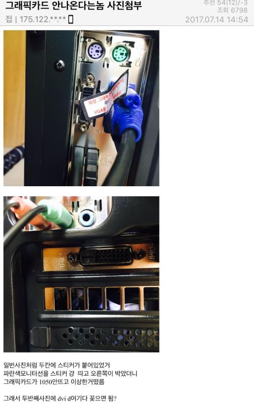 스티커에 외장그래픽 쓰려면 밑에 꽂으라고 써있는데 굳이 그 스티커를 떼고 위에다 꽂은걸 보고 문맹이라고 한거죠...