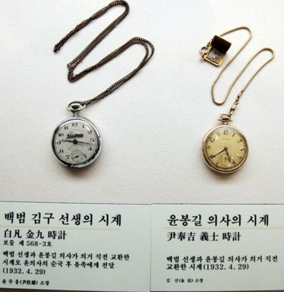 선생님(김구) 시계는 2원 짜리니 저하고 바꿉시다. 제 시계는 앞으로 한 시간밖에는 쓸 데가 없으니까요"