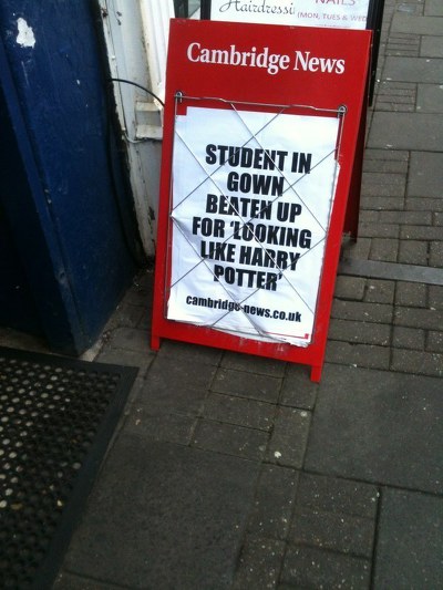 신문 헤드라인 "가운 입은 학생을 '해리포터 같다'며 폭행"