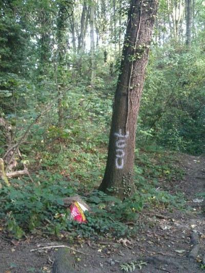 나무에 써있는 'cunt'는 나쁜욕임