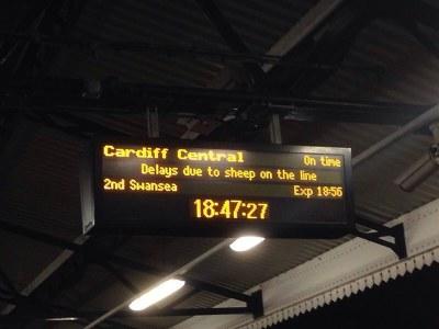 카디프 기차역 "기찻길에 양떼로 인해 기차들 지연됨"