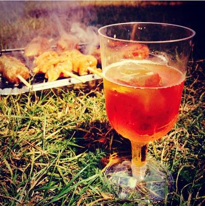 여름 햇볕아래에서 즐기는 술