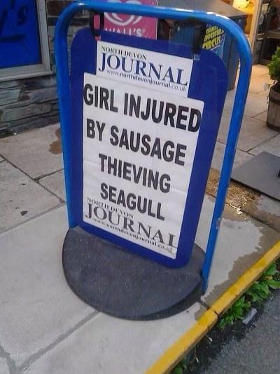 신문 헤드라인 "소세지 도둑 갈매기가 소녀 공격"