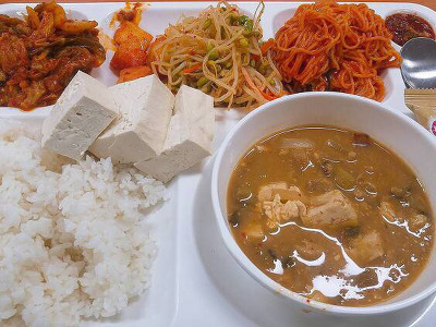 언뜻 봐도 아침 식단은 아닐법한 메뉴가 보이네요~ @