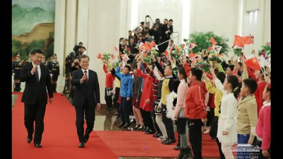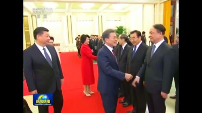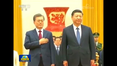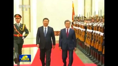 한국에는 보도 안된 문재인 대통령 환영식(중국 CCTV)