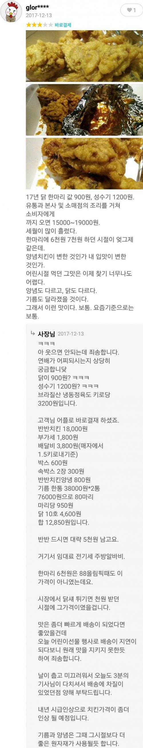 식용유/생닭을 너무 비싸게 떼오는거 아닌가 싶네요.