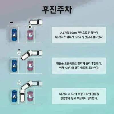 후진주차는 보통 저렇게 안하고 앞으로 대각선으로 나갔다가 주차하죠 |