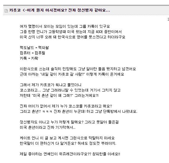 뭐 한글사랑 모임인줄...그냥 고유명사만 영어로 쓰면 안될 문제였는지...ㅋㅋㅋ |