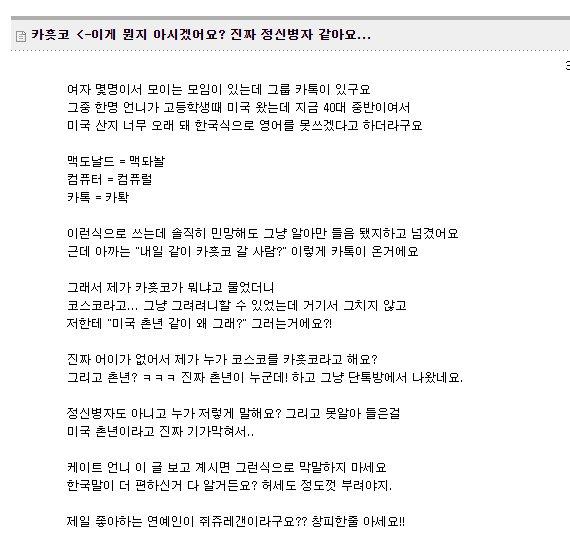 영어가 편하면 차라리 영타로 치던가ㅋㅋ |
