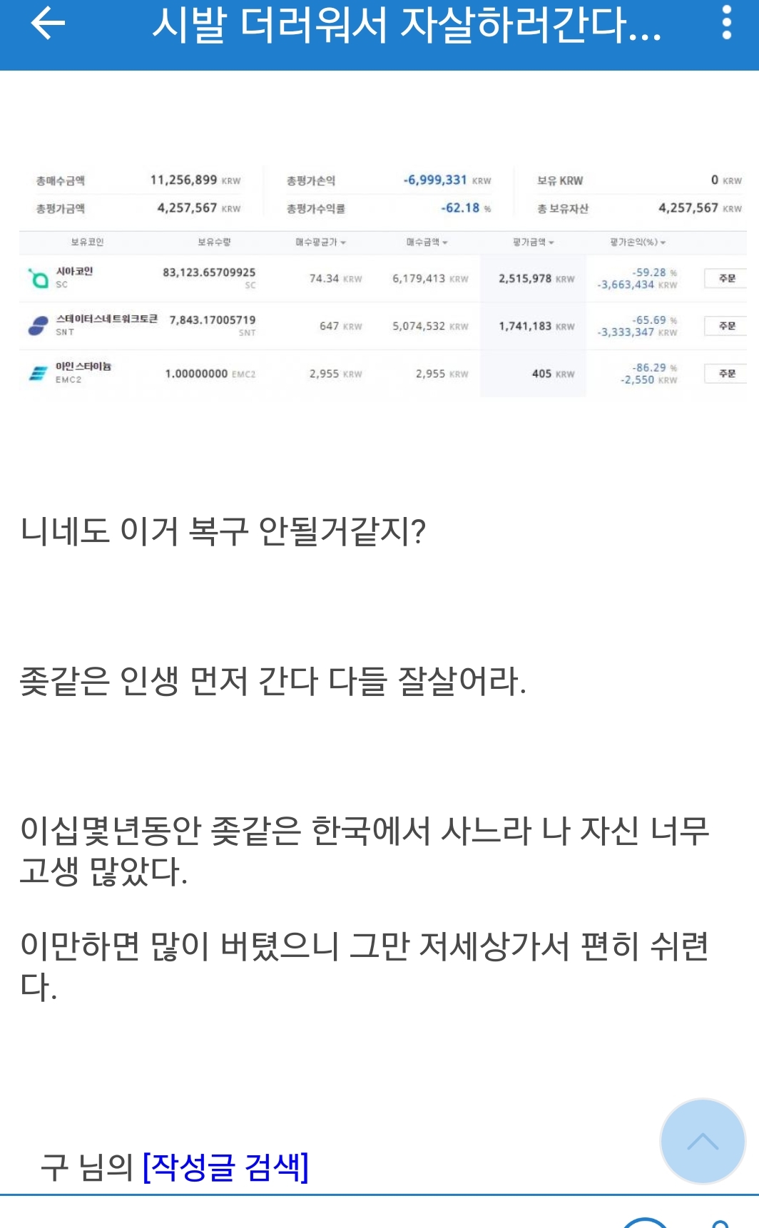 떡락했다는 비트코인 갤러리 근황