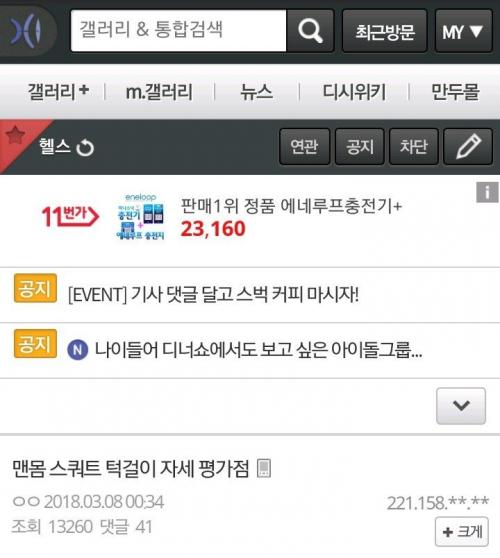 아~ 맨몸운동... 제길...안 본 눈 누가 팔까 모르겠네....