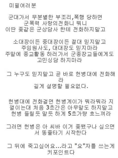 제가 군복무할때 본부중대에 특수보직으로 자대배치받은 놈이 흔한 병영생활에 적응을 못했는지