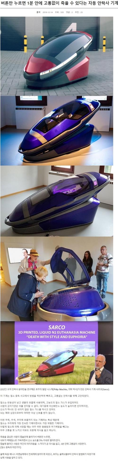 버튼만 누르면 1분 안에 고통없이 죽을 수 있다는 자동 안락사 기계 > 유머게시판
