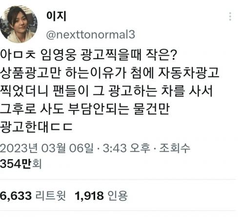 임영웅은 왜 작은 제품 광고만 할까? > 유머게시판