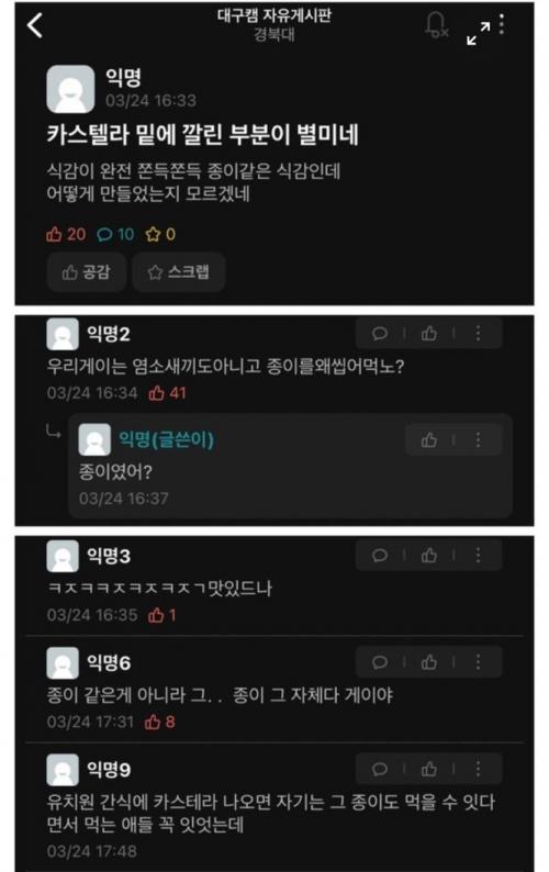 카스테라 밑에 먹는사람도 있구나..