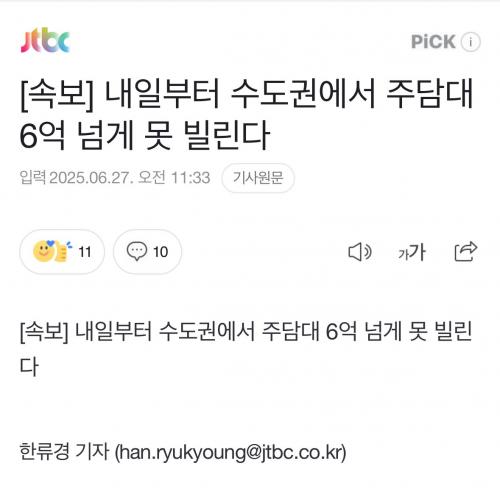 속보 내일부터 수도권에서 주담대 6억넘게 못 빌린다