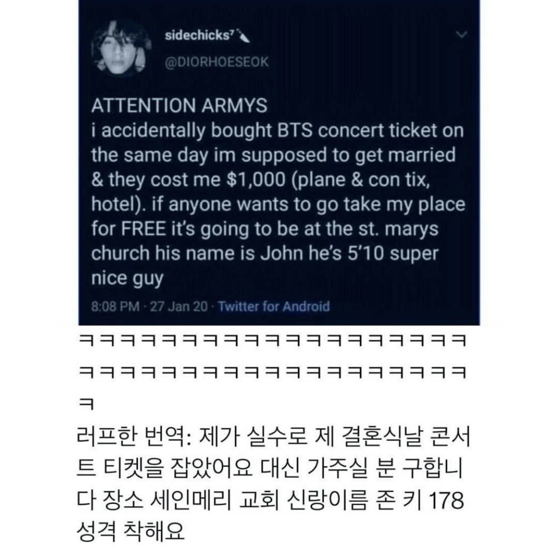 실수로 결혼식날 콘서트표를 사버린 아마 > 유머게시판