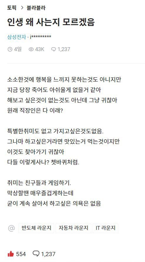 직장인들이 많이 공감한다는 블라인드 글 > 유머게시판