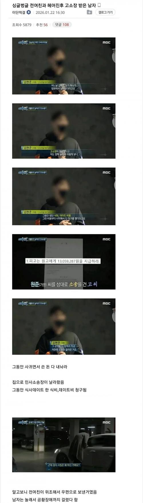 전 여친과 헤어진 후 고소장 받은 남자 > 유머게시판
