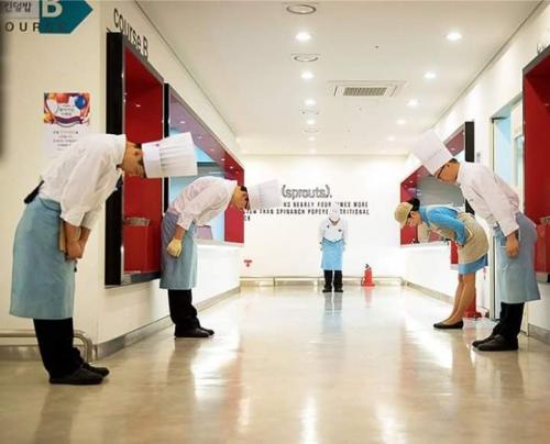 요리하시는 분들이 왜 저렇게 인사를 하고 있는지.. | ||