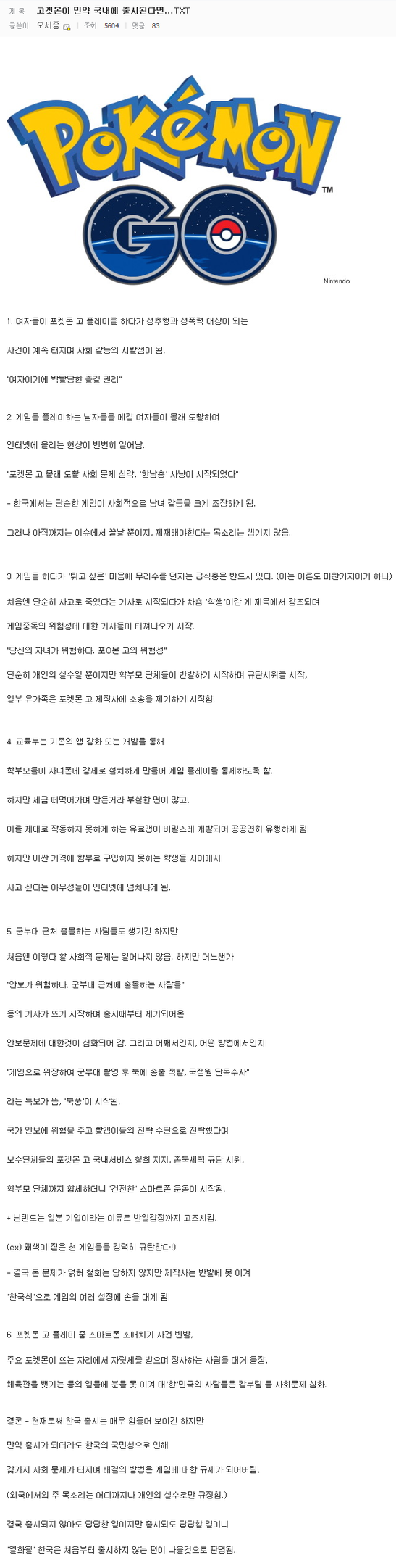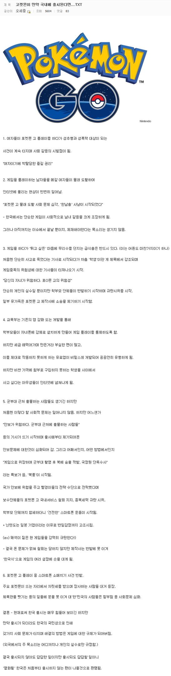 한국에 포켓몬GO 가 출시된다면???(DC 주의) > 유머게시판