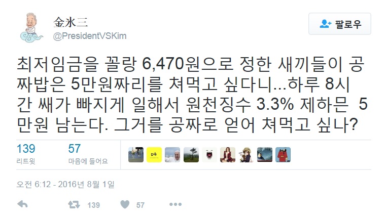 저런 것들은 최저시급 주고 죽도록 일시켜야 해요. | ||