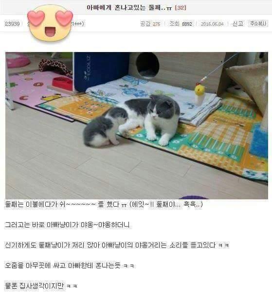 집사에게 길들여진 고양이 아빠의 교육 방식 > 유머게시판
