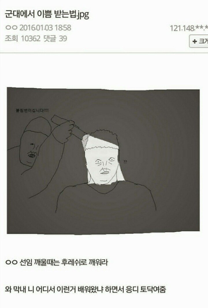 귀 옆으로 다가가 사랑을 속삭이듯이 ☆☆☆병장님 근무 교대하셔야 합니다.
