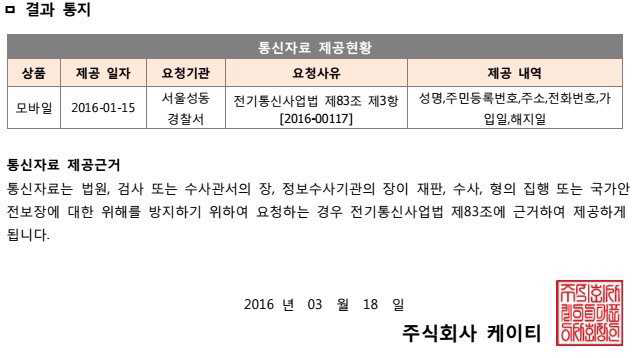 각 통신에 자료 요청하면 자료를 1주일 후 답변을 보내주더군요. 저는 아직까지 수사 자료로 제공된 적은 없네요.. |