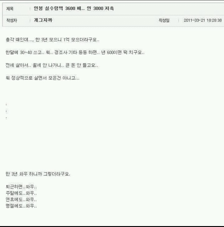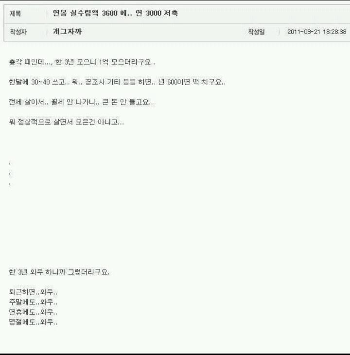 집에서 안 나가고 일-집-일-집하면 돈이 모이더군요. |