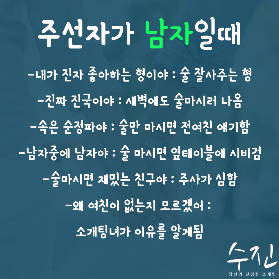 마지막 멘트의 여자는 주선을 안해주죠. 너랑 안 어울려 하면서.. |