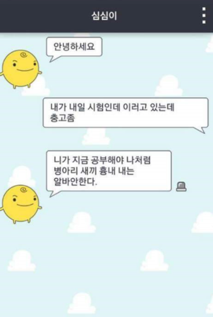 심심이보다보면 너무 예리해서 사람 같을때 있더라구요 ㅋㅋ