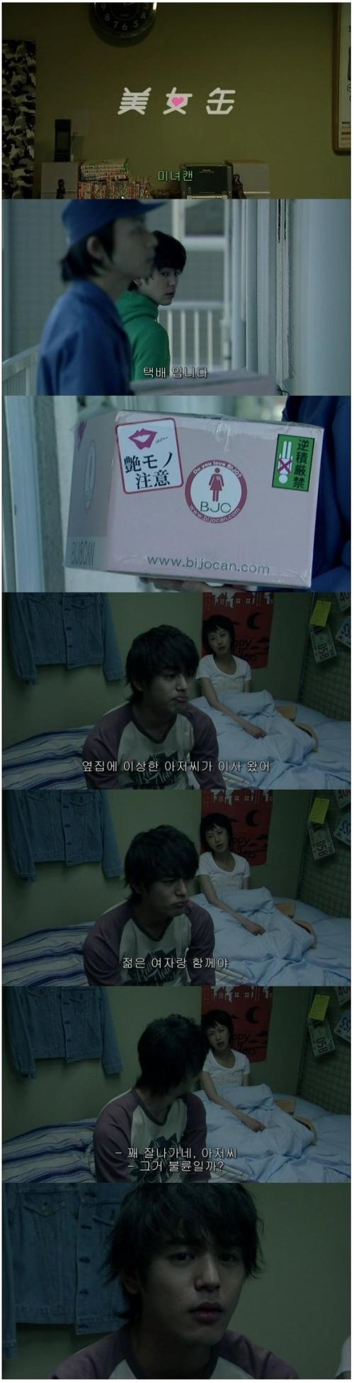 이 것이 무엇인지 궁금한 남주는 결국 베란다를 통해 옆집 남자집에 몰래 잠입.