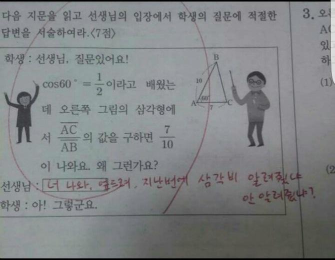 빨간볼펜인걸 보니 선생님이 답 적은 것 같아요.