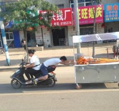 그냥 끈으로 오토바이에 묶지... |