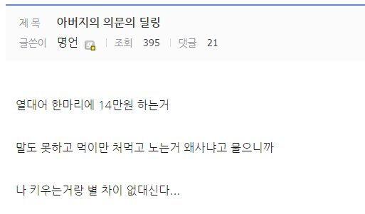 댓글로 님도 밥먹여준 부모한테 승질내지 않냐고 하던 짤이 생각나는데