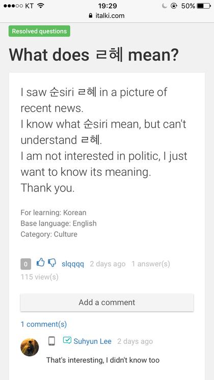 ㄹ혜가 무슨 뜻이오?