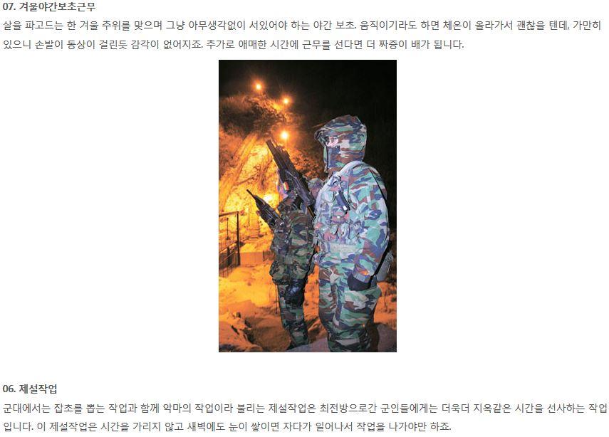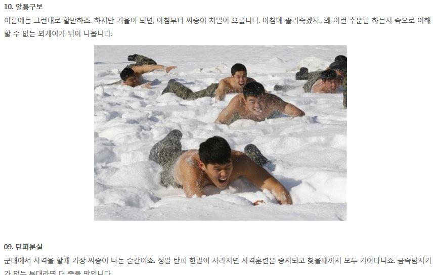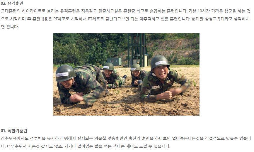 본문에 혹한기 훈련이랑 겨울 야간초 빼고는 다 할만한데