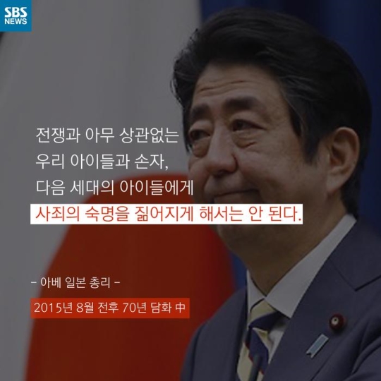 아베의 저 발언은 결국 진심으로 자기네들의 후손들을 걱정하지 않는 것이지요...진짜 걱정한다면...자기대에 그 업보를 최대한 지우기 위해서라도 사죄하고 반성해야 하거늘...결국 그 업보를 그대로 물려주는 것이지요...