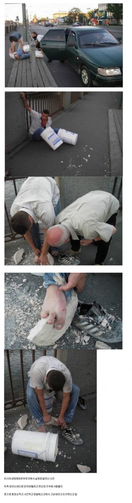 시멘트면 금방 굳는게 아니라 저렇게 되려면 최소 몇시간은걸려요 그시간동안 가만히 있을리 없죠