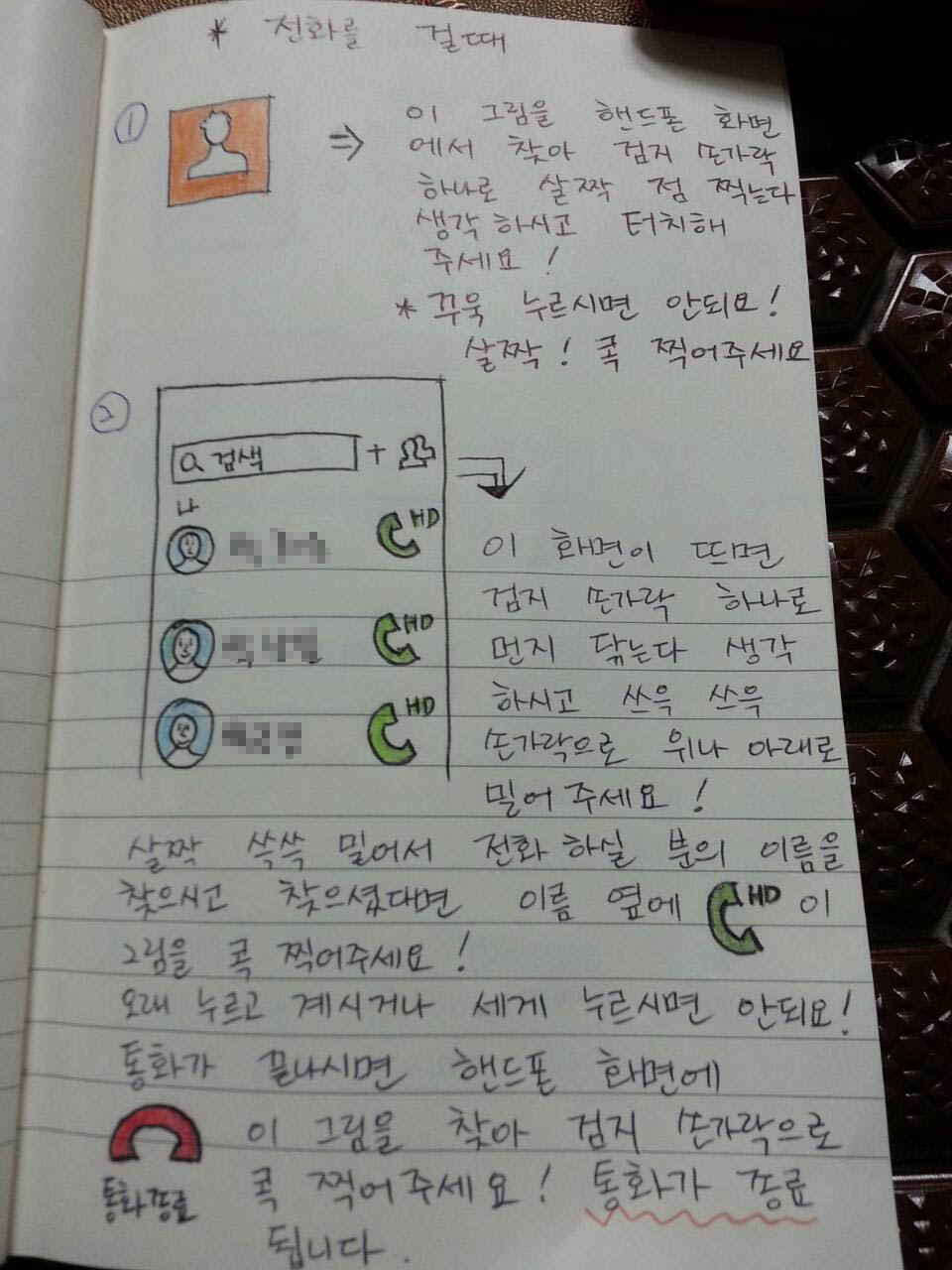 연세가 있으셔서 사용법이 복잡하고 전화받고 거는 것 조차 어려워 하시니까..