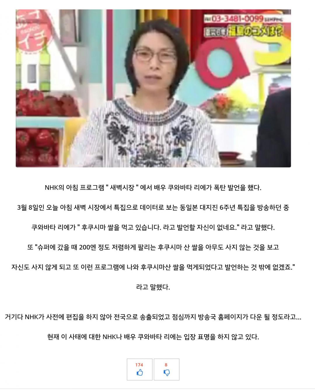 우리만 유독 심하죠... 얼마전 우리나라 어느 지역에서 후쿠시마 농산물 했다죠...ㄷㄷ |